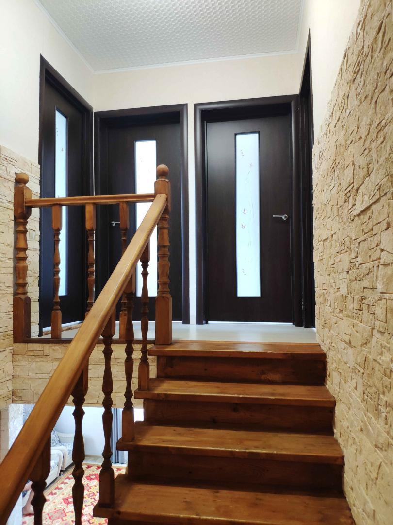 Наше предложение для тех, кто давно мечтает жить в своём доме, где царит атмосфера умиротворённости, покоя и чистоты; для тех, кто заботясь о своём здоровье и о здоровье своей семьи, предпочитает натуральные продукты, покупным. Для этих целей имеется земельный участок площадью 4 сотки, а так-же погреб для хранения выращенного урожая и домашних заготовок. Пространство внутри дома грамотно распределено, что позволило создать просторную прихожую, уютную гостиную , обустроить функциональную кухню, три спальни, веранду, два санузла и гараж. А благодаря проведённым коммуникациям (газ, центральный водопровод, канализация-септик, электричество)- вы не почувствуете разницы с проживанием в благоустроенной квартире. Тишину и спокойствие, чистейший воздух обеспечивают берёзовая роща и зелёное поле, а так же минимум соседей. В то же время, хочется отметить, наличие развитой инфраструктуры в пешей доступности. Все это и многое другое, можно найти в нашем доме. Приезжайте на просмотр, не пожалеете. PS. Большая часть мебели и техники, останется новым владельцам.