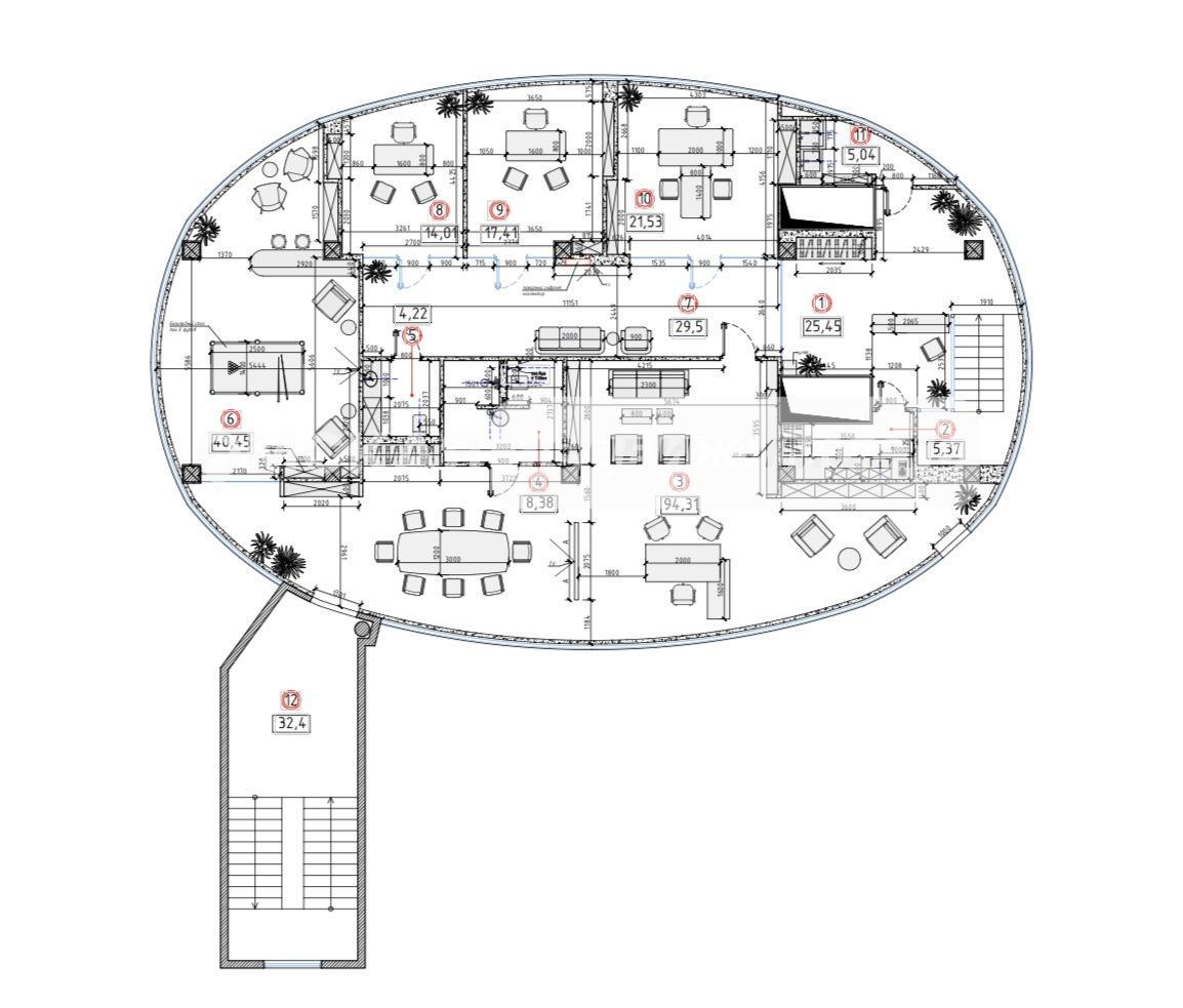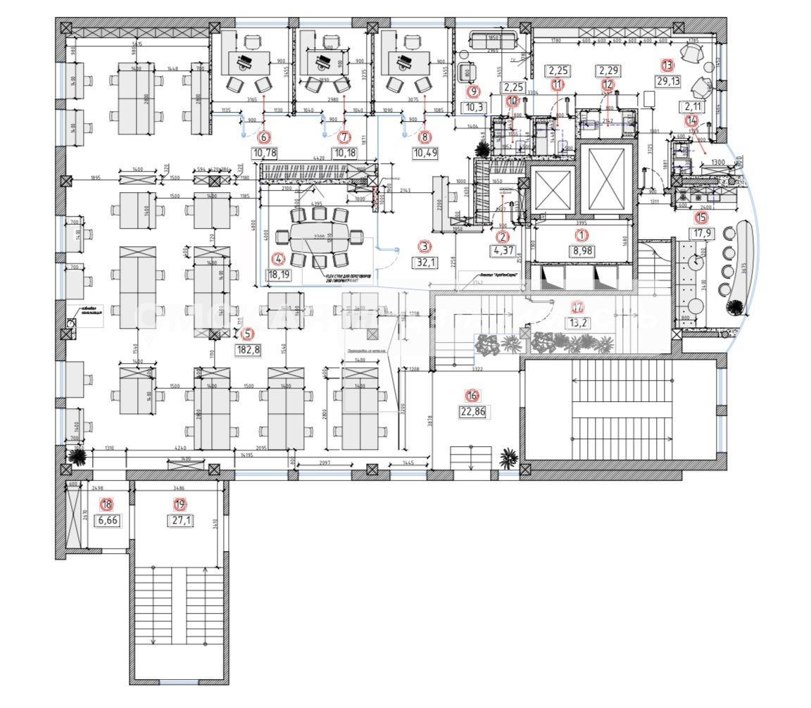 - Возможна планировка: Разделение на кабинеты руководства, open-space зоны, переговорные комнаты, ресепшен, зоны отдыха и кухни-столовой.