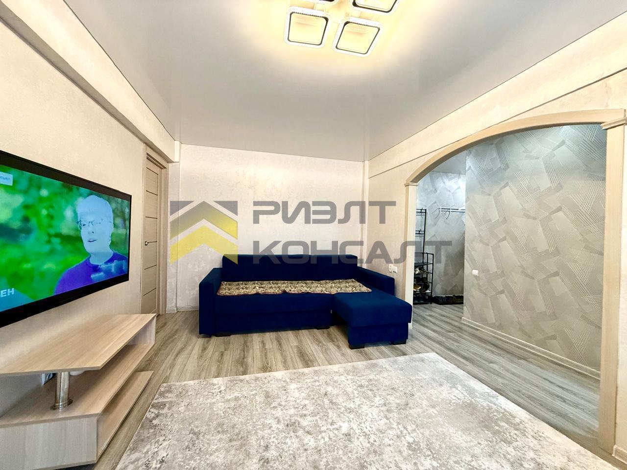 Предлагается к продаже 2-х ком. квартира в отличном состоянии с современным ремонтом. В жилье предусмотрена просторная гардеробная для удобство хранения вещей и способствует порядку в доме. Кухня просторная и полностью оборудована качественным кухонным гарнитуром. Гостиная отличается вместительностью и имеет выход на балкон. Все окна в квартире заменены на пластиковые, что обеспечивает хорошую тепло- и шумоизоляцию. Электропроводка полностью обновлена и выполнена из меди, что повышает безопасность и надежность электроснабжения в квартире. Расположение на третьем этаже делает квартиру удобной для проживания. Местоположение квартиры является одним из её преимуществ — рядом находятся остановки общественного транспорта, магазины, рынок, школа и детские сады, поликлиники, банки и т.д.. Такое расположение обеспечивает комфортную жизнь и быстрый доступ ко всем необходимым объектам инфраструктуры, что делает данное предложение особенно привлекательным для семей и тех, кто ценит удобство и мобильность.