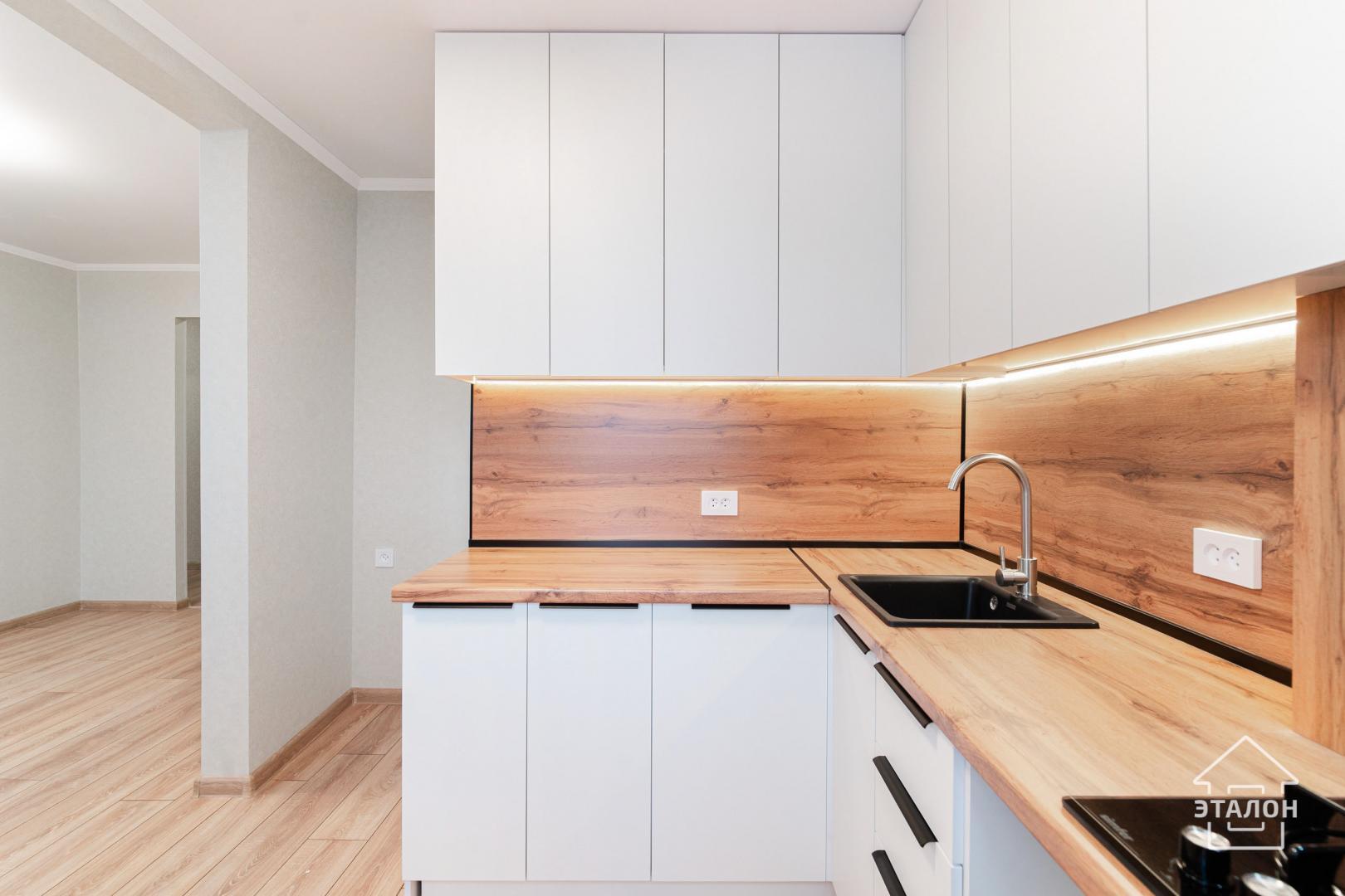 • Кухня: Установлен новый гарнитур с предусмотренными нишами под всю необходимую технику (холодильник, духовой шкаф, посудомоечная машина).