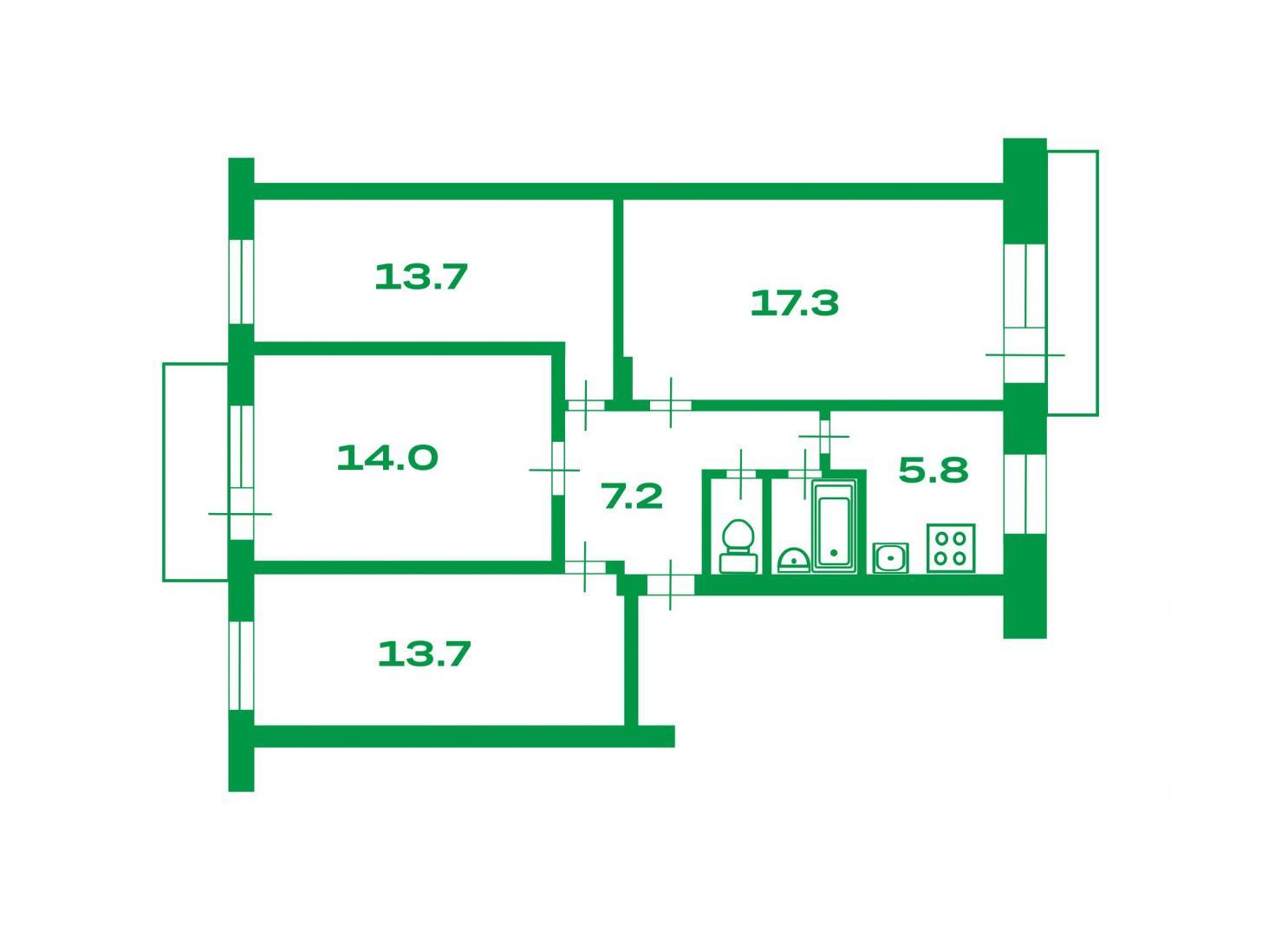Общая площадь без учета лоджии - 75,1м.кв. Комнаты изолированные. Удобный для проживания 2-ой этаж. Санузел раздельный. Выход на балкон из гостиной и из спальни. Квартира не угловая. Окна ориентированы на пешеходный променад и во двор. Панельный дом 1969 г постройки.