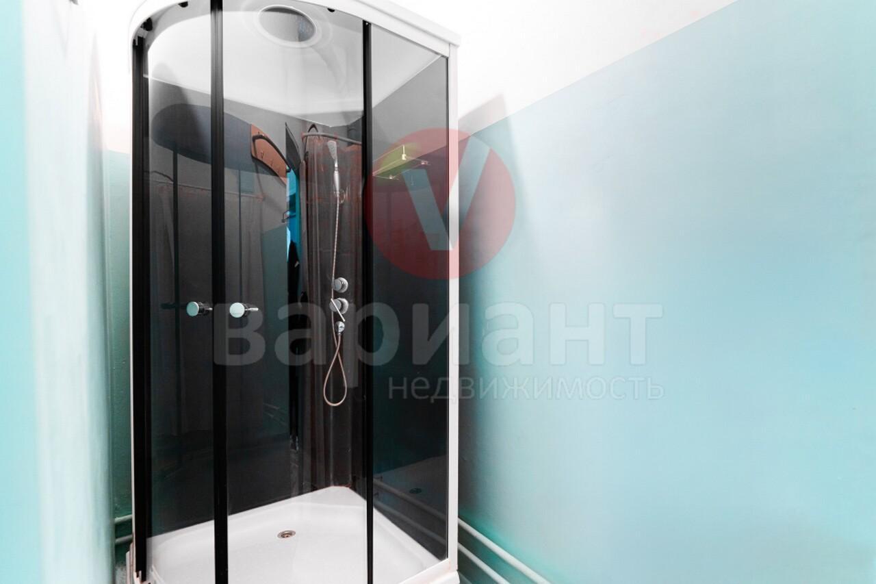 Комната находится в секции из 3 комнат. К комнате прилагается отдельный, собственный санузел, душевая кабина и постирочная. Хорошее состояние, большие окна — ПВХ, трубы — чугун, пол — линолеум.