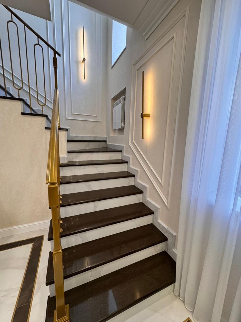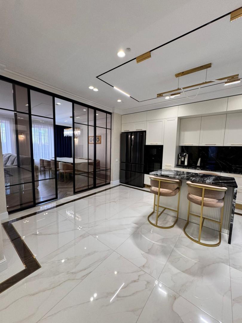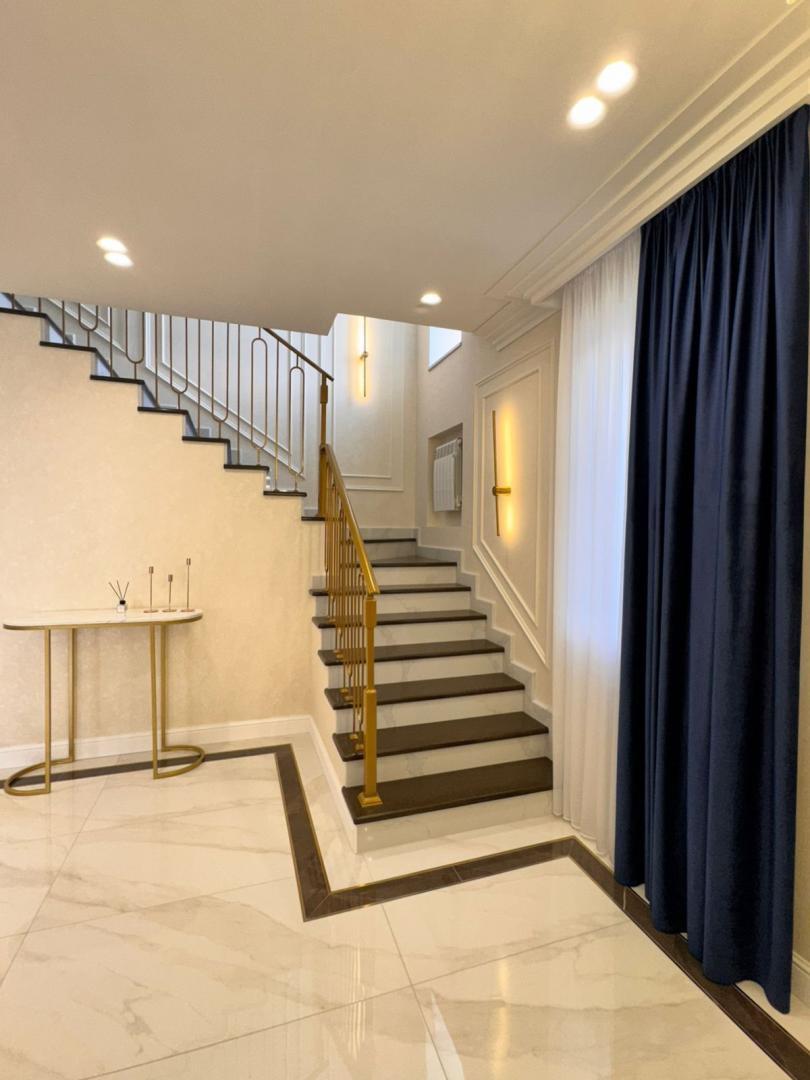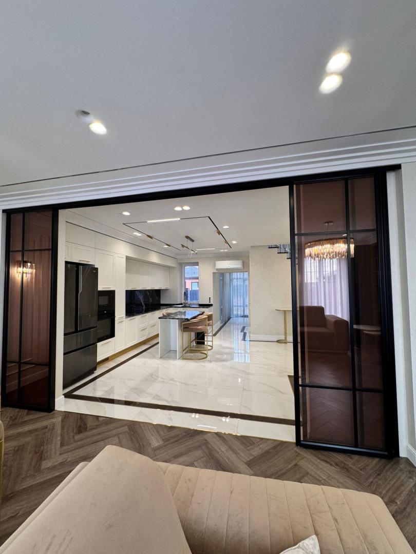 AH Домoфон представляет к продаже дом 2020 года постройки, расположенный в живописном месте города Омска - коттеджном поселке Чукреевка, в непосредственной близости с которым находятся торговые центры ''Мега'' и ''Леруа Мерлен'', школы, детские сады, спортивные сооружения. Путь к участку с домом ведет асфальтированная дорога. В 2025 году в доме был выполнен ремонт, на данный момент его износ составляет 0 % . Жилой дом расположен на участке площадью 400 кв.м., на котором так же располагаются: хозяйственный блок, предназначенный для хранения инструментов; гаражный бокс на один автомобиль, с автоматически открывающимся воротами, управление которых осуществляется дистанционно; беседка, выполненная из кирпича с элементами коричневого остекления, для отдыха и приготовления пищи на мангале. На участке имеется свободное место для размещения иных построек, либо благоустройства детской площадки. Придомовая территория участка уложена тротуарной плиткой. Периметр участка находиться под круглосуточным видеонаблюдением. Жилой дом общей площадью 160 кв.м., выполнен из кирпича, имеет железобетонные перекрытия, крыша покрыта металлочерепицей. Дом оснащен автономным газовым отоплением, так же имеется резервное – электрическое, водоснабжение и канализация - центральное. Эргономичное планировочное решение, позволило разместить на площади дома, все необходимое для комфортного проживания. На 1 этаже дома расположились: просторная входная группа, где размещены два вместительных шкафа для личных вещей, далее расположена кухня – гостиная, где функциональная зона и зона отдыха отделены друг от друга уникальной перегородкой - раздвижные двери, выполненные из темного стекла; гостевой санузел с душевой и системой инсталляции; под лестницей, за дверью срытого монтажа, оборудована котельная. Так же на этаже имеется выделенное место с панорамным остеклением окон для размещения лаунж-зоны. На 2 этаже расположены три изолированные спальни, вместительная гардеробная с системой хранения, выполненной под индивидуальный заказ, просторный санузел с ванной и системой инсталляции. Отделка дома выполнена в сдержанной цветовой гамме теплых тонов, где использованы дорогостоящие качественные материалы: стены покрыты декоративной перламутровой штукатуркой с отделкой молдингом, отдельно стоит отметить стену в одной из спален в отделке которой использована поталь; для напольного покрытия на 1 этаже использован кварцвинил и напольная керамическая плитка, напольное покрытие 2 этажа- кварцвинил; для отделки санузлов использован итальянский кафель; подоконники изготовлены из кварцевого агламирата; межкомнатные дери фирмы Uberture изготовлены под заказ из массива дерева. Ремонт выполнен компанией PROремонт, с гарантией на произведенные работы. Небольшое описание меблировки дома, которое приведет Вас в восторг при личном посещении: кухонный гарнитур, сделанный на заказ, оборудован встроенной бытовой техникой, таких фирм как Samsung, AEG, Haier, столешница кухонного гарнитура выполнена из природного камня, кухонная раковина из камня оборудована измельчителем, обеденный стол изготовлен из мрамора, покрытого защитной пленкой. Вся мебель в доме изготовлена в студии Арт-мебель по индивидуальному дизайн - проекту. Во всех комнатах имеет несколько сценариев освещения: от приглуше