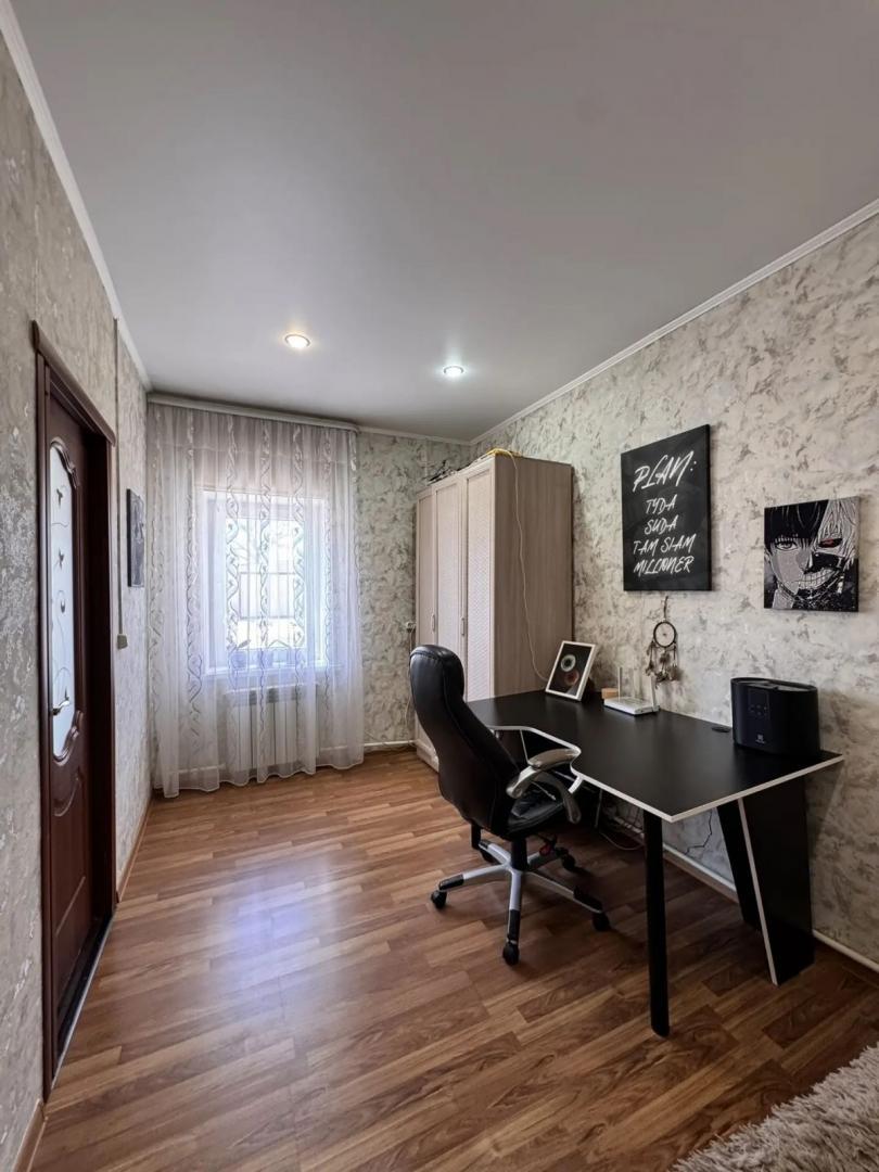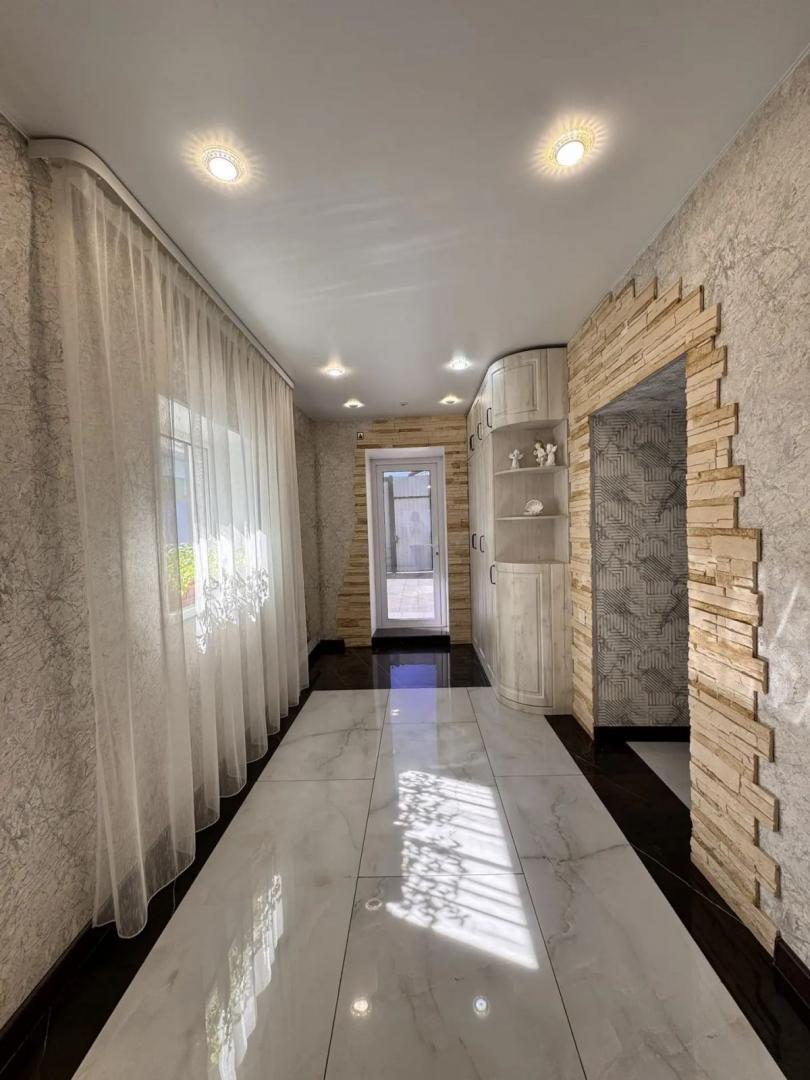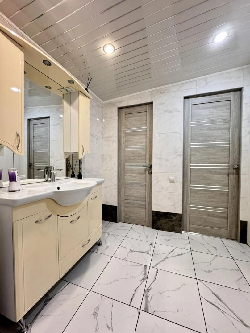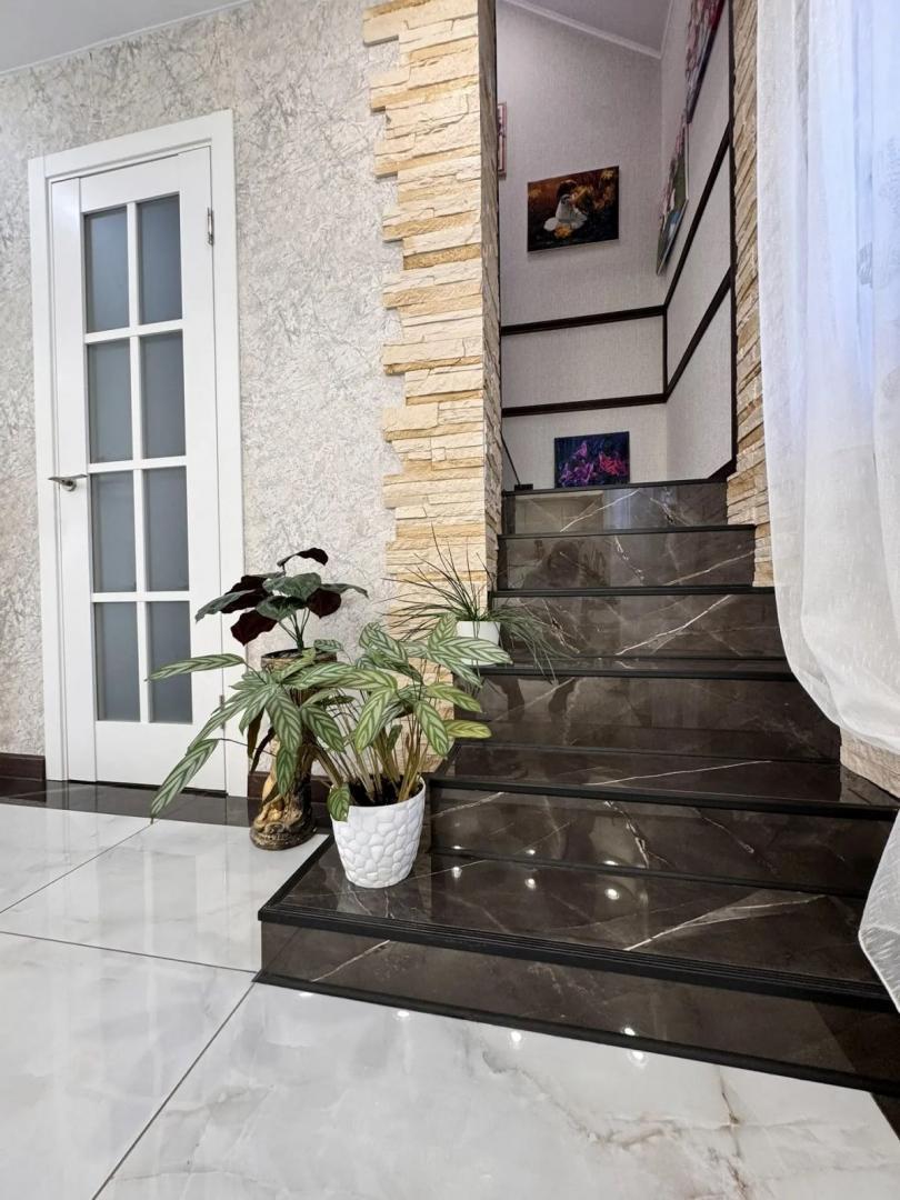 Номер объекта: 537555. Агентство недвижимости «Домофон» представляет вашему вниманию просторный и современный отдельно стоящий дом, который станет идеальным выбором для комфортной семейной жизни. Описание дома: ·         Первый этаж: шлако-литой, включает три комнаты, просторную уютную кухню и удобный санузел. ·         Второй этаж: каркасный, оборудован двумя уютными спальнями, просторным холлом и дополнительным санузлом. ·         Ремонт: выполнен в современном стиле, установлены натяжные потолки, что придаёт дому особый шарм и уют. ·         Полы: на первом этаже — керамогранит, в спальнях — ламинат, что обеспечивает комфорт и тепло. ·         Отопление: продуманная система электроотопления, тёплый пол на кухне, в санузле и бане (кроме парилки), что гарантирует тепло и уют в любое время года. Участок и двор: ·         Двор: выложен плиткой, участок правильной формы, что позволяет наслаждаться пространством. ·         Хозяйственные постройки: отличная баня с выходом в дом, теплица для выращивания свежих овощей и зелени. ·         Парковка: комфортный подъезд, достаточно места для автомобиля. Комфорт и инфраструктура: ·         Центральные коммуникации: вода, газ, электроэнергия. ·         Канализация: септик, что обеспечивает комфорт и удобство. ·         Район: спокойный и зелёный, в шаговой доступности находятся магазины, школы, детские сады и остановки общественного транспорта. Не упустите свой шанс стать обладателем этого замечательного дома! Это отличное место для тех, кто ценит уют, тишину и развитую инфраструктуру.