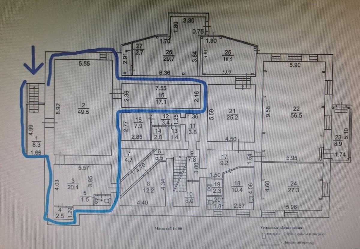 - основное пространство 49,50 кв. метров