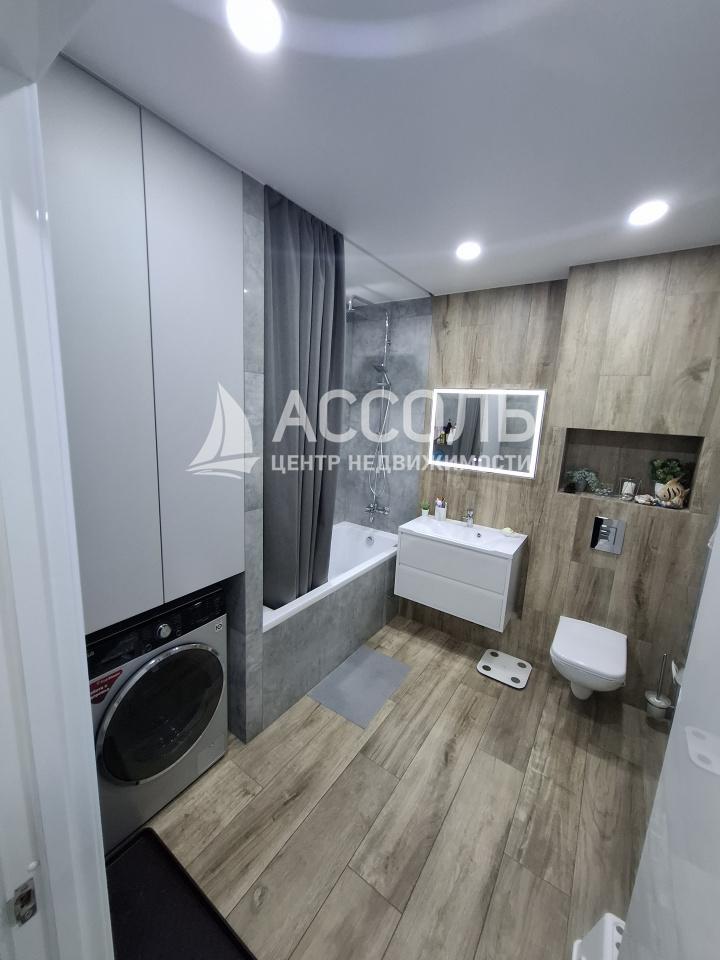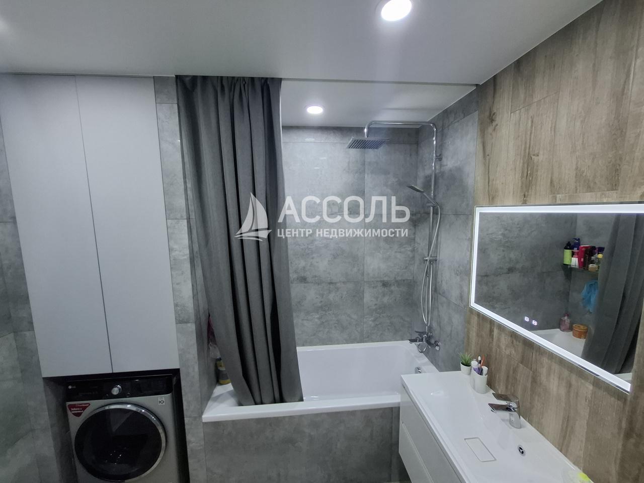Санузел совмещенный, оформлен в современном стиле с использованием качественных материалов,теплый пол.Из окон открывается вид во двор, где расположена детская площадка и в шаговой доступности школа.Рядом дет.сад,магазины.Зоопарк через дорогу и парк,где можно заниматься спортом и отдыхать.