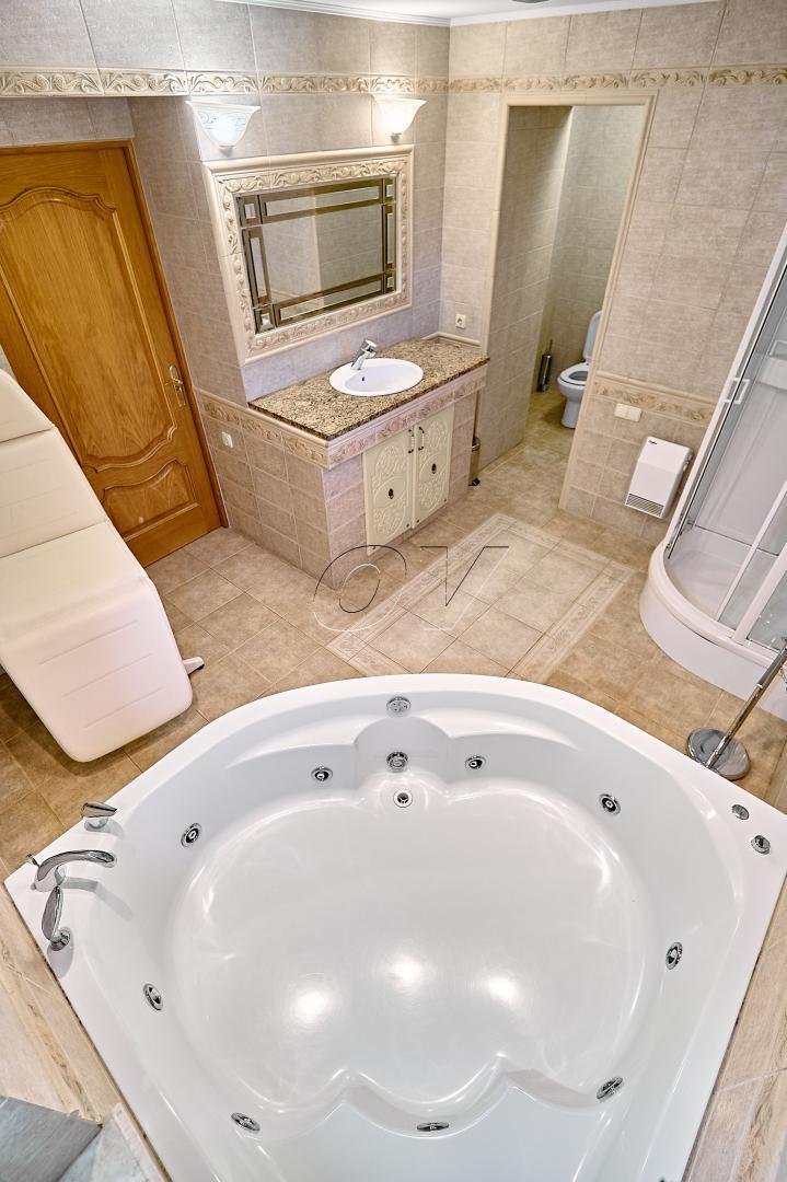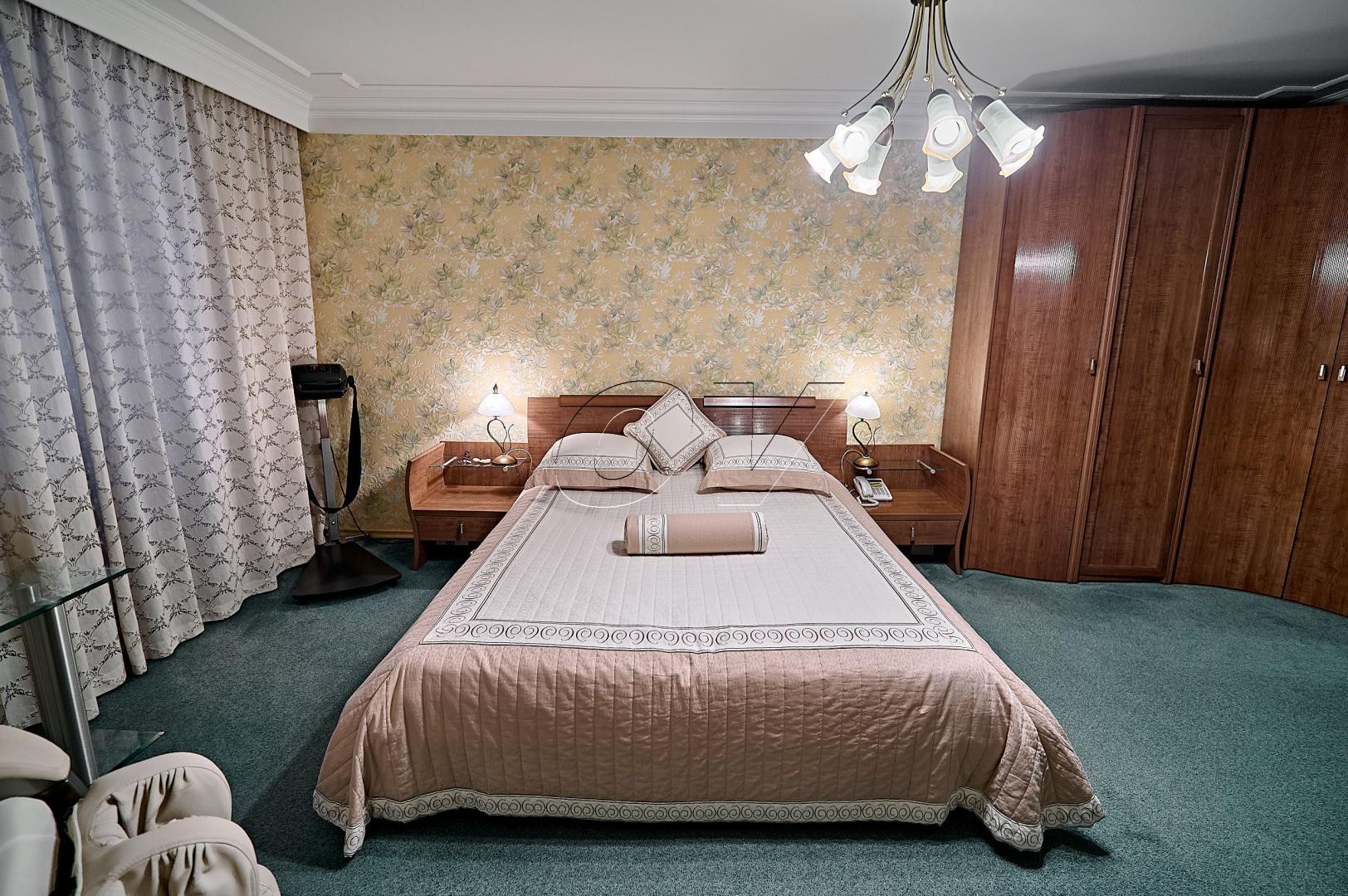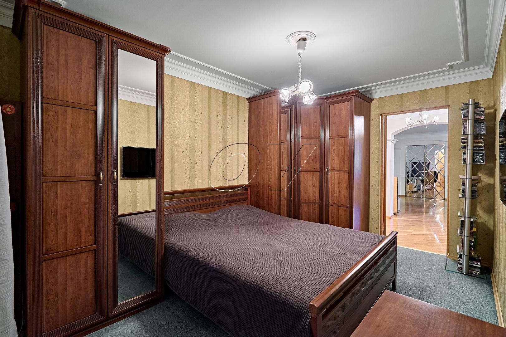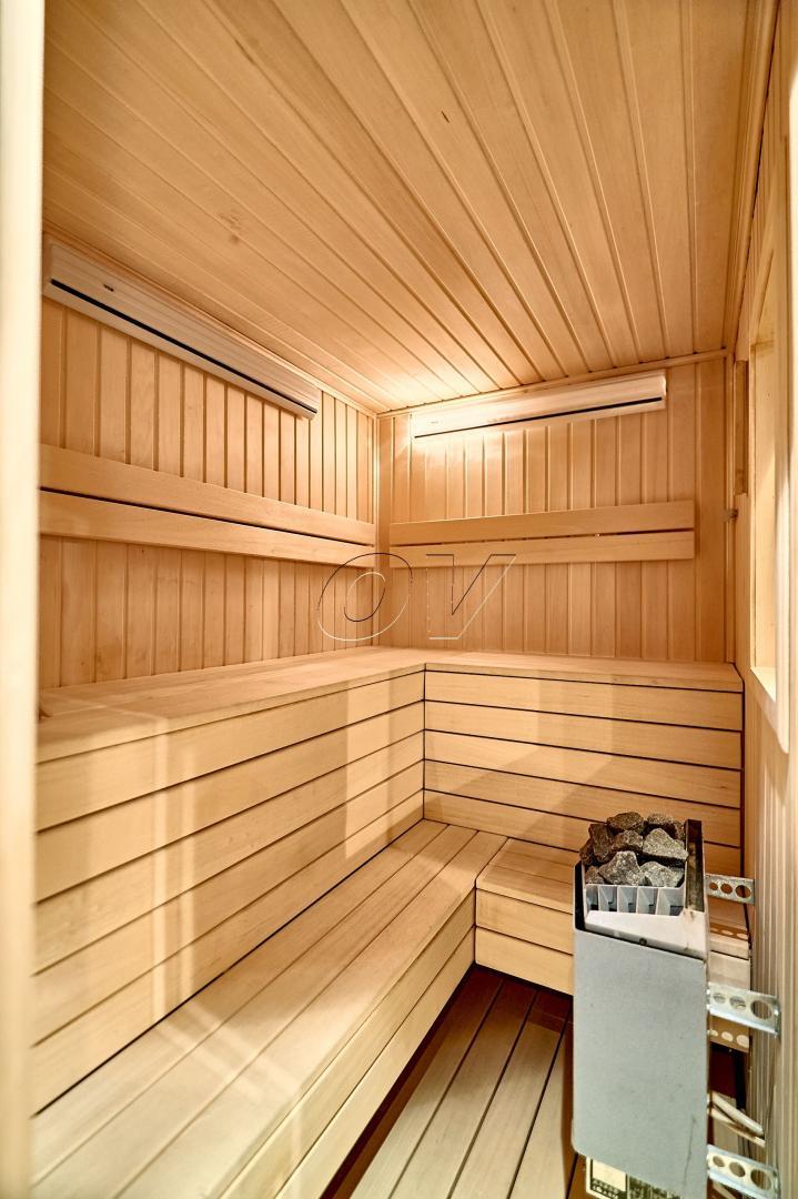 По планировке – гостиная (36,1 кв.м), спальня-1 (23,7 кв.м), спальня-2 (11,3 кв.м), кухня (13,1 кв.м.), ванная комната с санузлом (11,2 кв.м), второй санузел, отдельная гардеробная (3,2 кв.м), сайна.