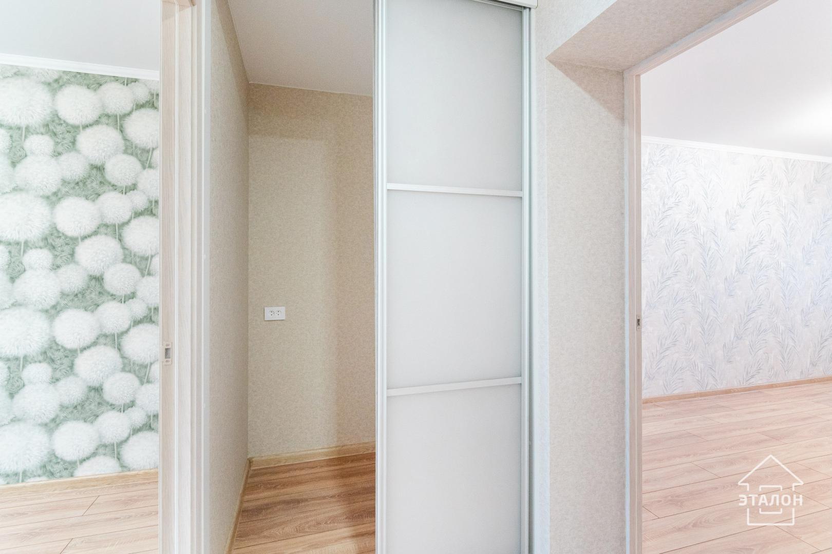 • Системы хранения: Предусмотрена вместительная кладовая с эстетичными раздвижными стеклянными дверями — стильное решение для организации гардероба.